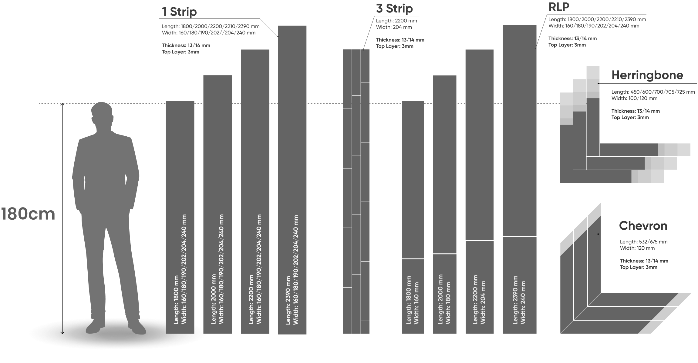 1800 / 2000 / 2100 / 2200 / 2390 х 140 / 150 / 160 / 180 mm